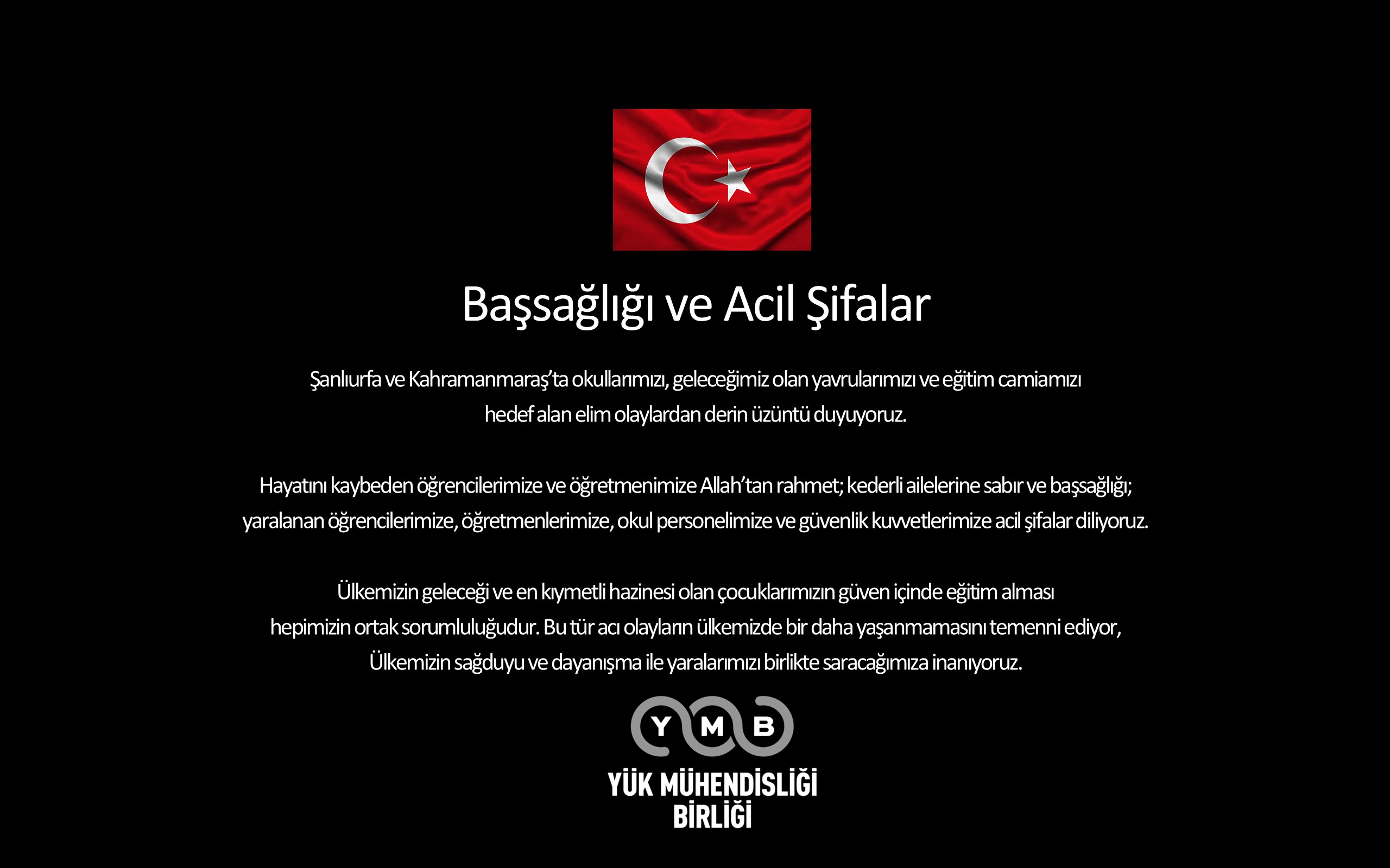 Vefat eden çocuklarımıza ve öğretmenimize Allah’tan rahmet; kederli ailelerine sabır, yaralanan tüm canlarımıza ve güvenlik güçlerimize acil şifalar diliyoruz.